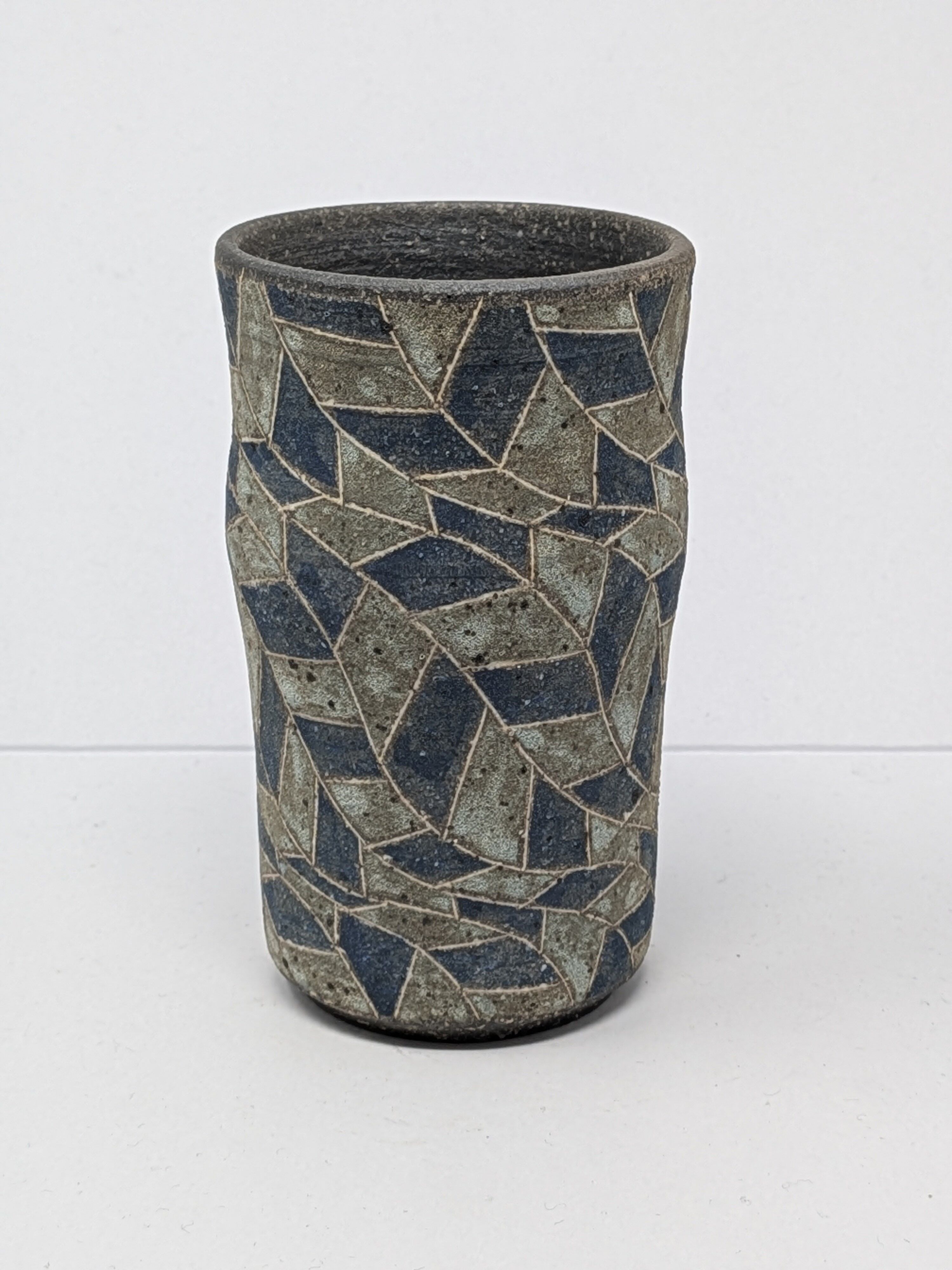 温かみのあるデザインで、心豊かなひとときを演出する、竹内真吾 炻器 象嵌ビアカップB