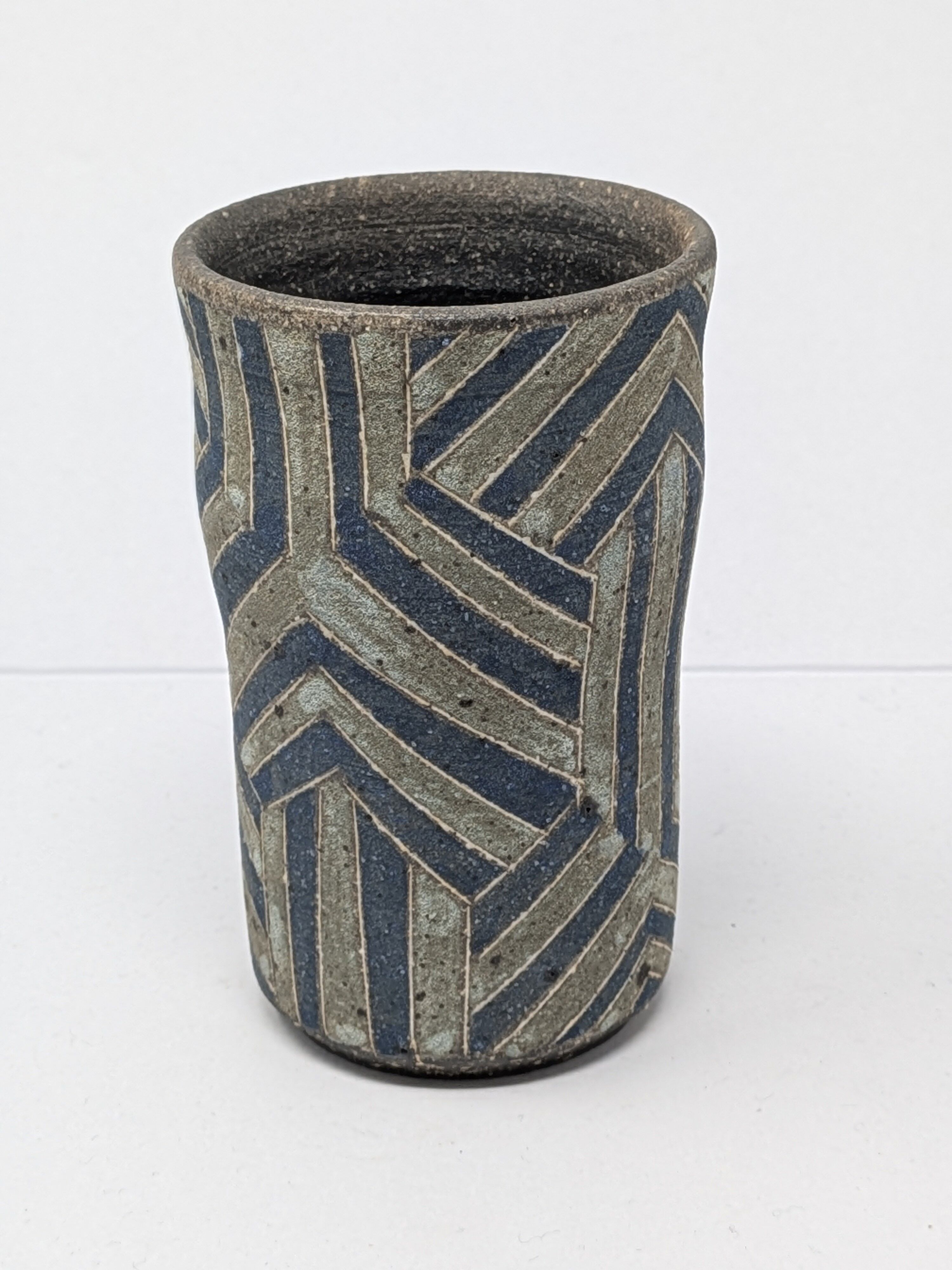竹内真吾が手掛けたこの炻器ビアカップは、焼き締めの質感と美しい象嵌技術が融合した一品です。ビールの泡が細かくなり消えにくく、日常の飲み物をより特別なものにしてくれます。