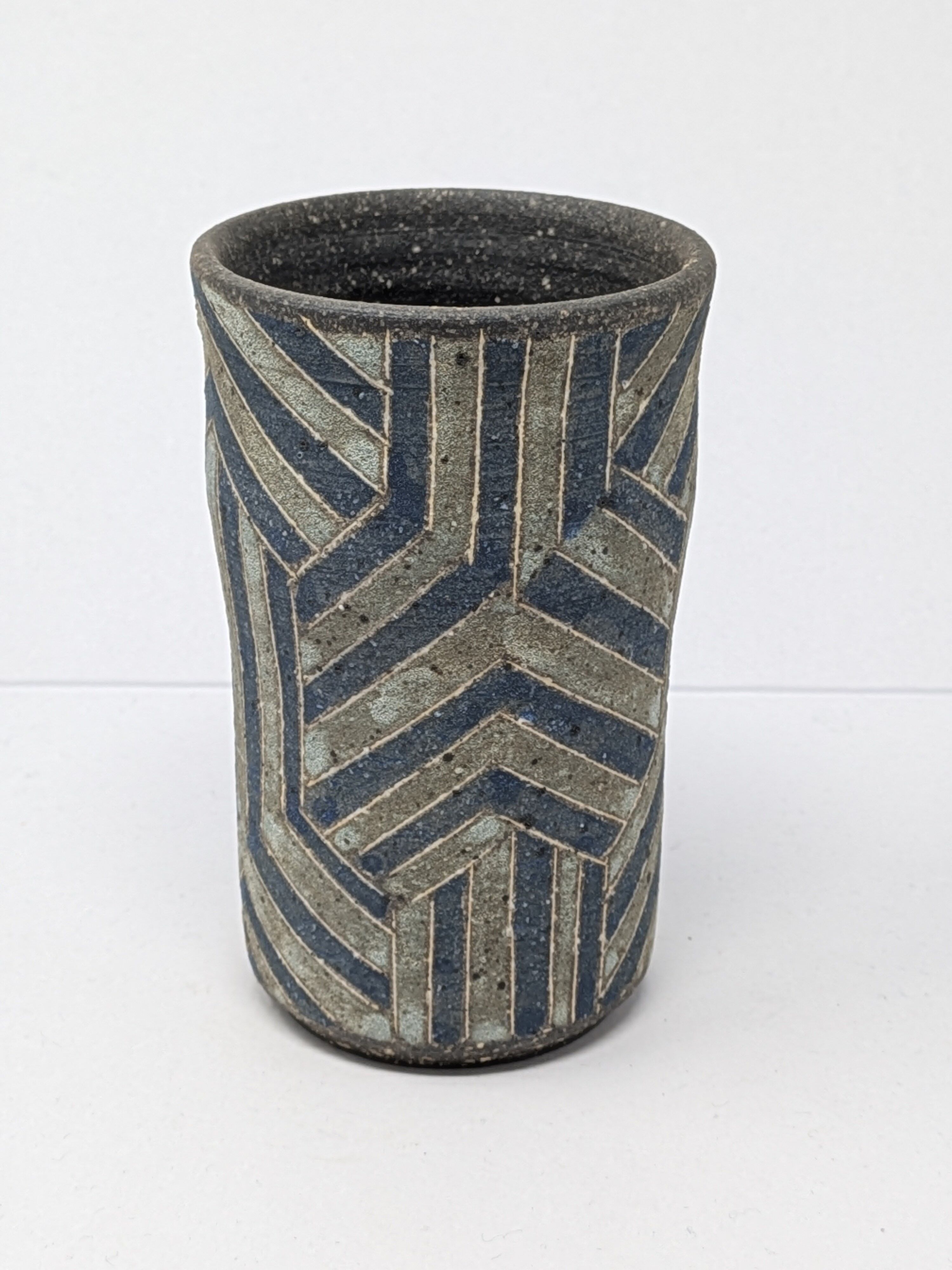 温かみのあるデザインで、心豊かなひとときを演出する、竹内真吾 炻器 象嵌ビアカップC