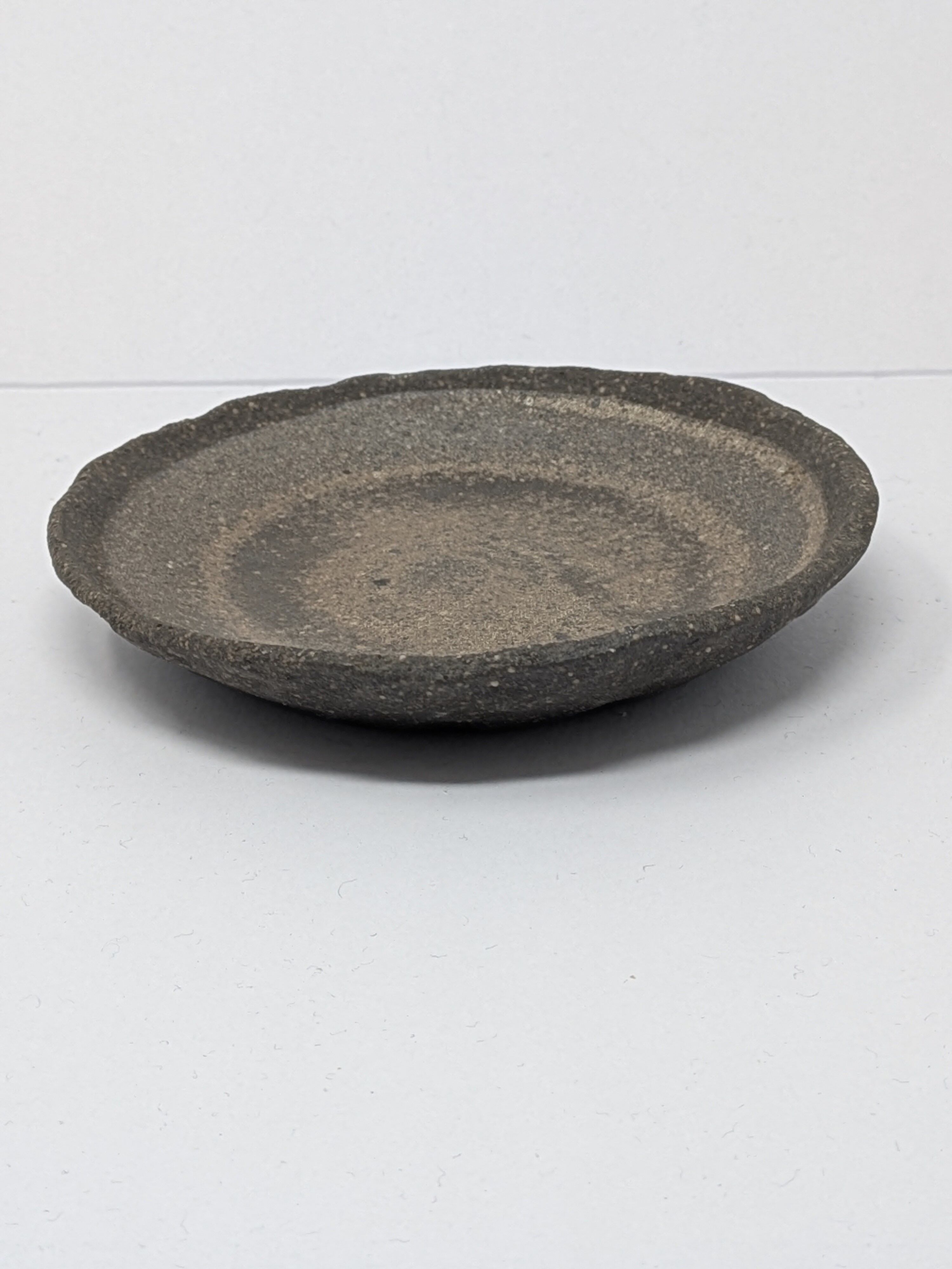 竹内真吾が手掛けたこの炻器丸皿は、焼き締めの質感とタタラ成形の技術が見事に融合した美しい逸品です。象嵌されたデザインが印象的で、特別な食卓を彩る一皿となります。